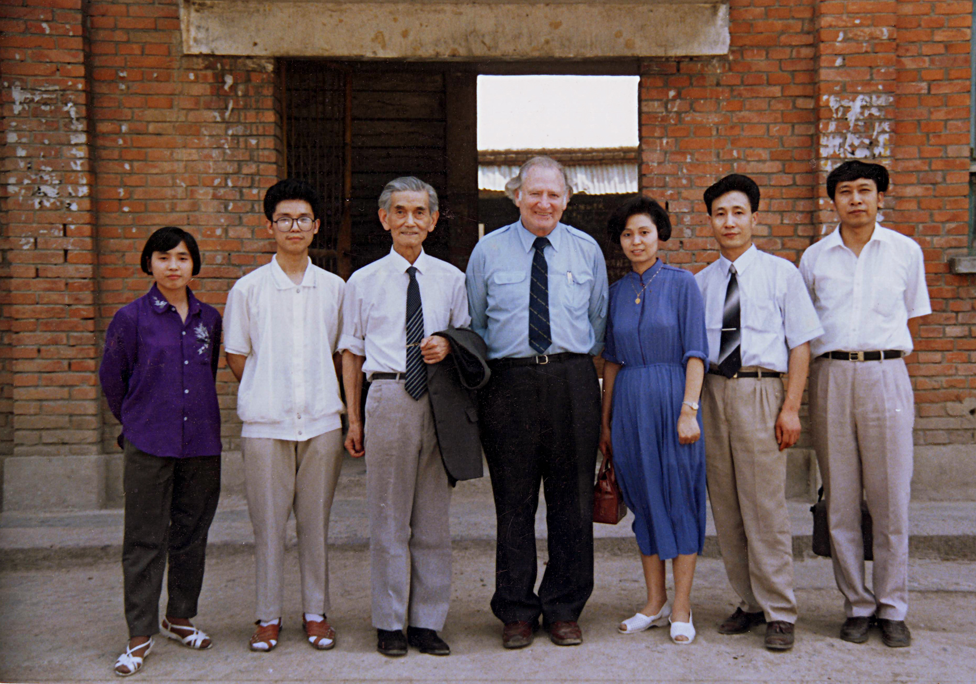世界卫生组织亚太地区行政长官、美国哈佛大学牙学院副院长多根教授(中间)和华西医大预防科教授刘大维(左数第三)简阳雷氏口腔创始人雷晓伦、牙防所所长朱英